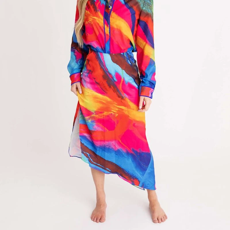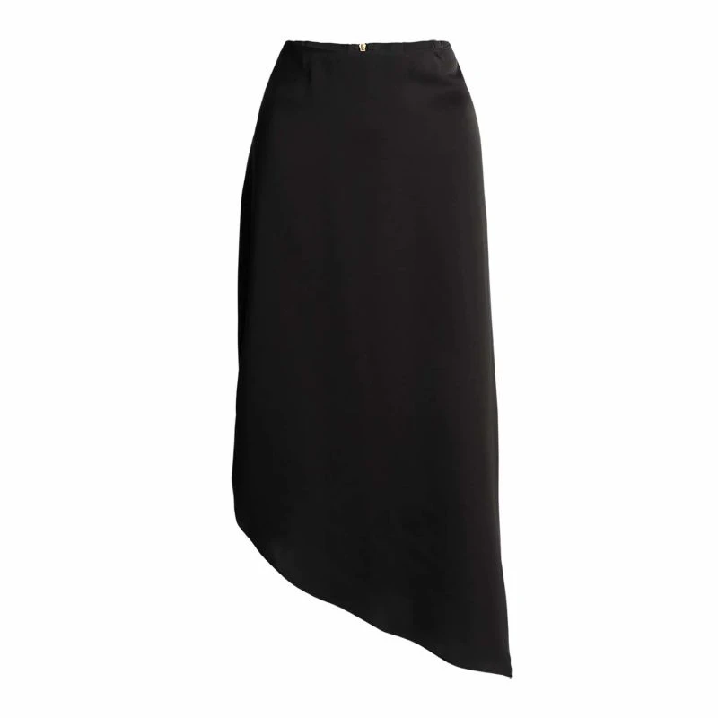 🔥Turn heads in this daringly flirty Asymmetrical Skirt! With an elastic waistband and zipper in back, this skirt moves with you as you show off its sultry side slit. Take a risk and 💃the night away!