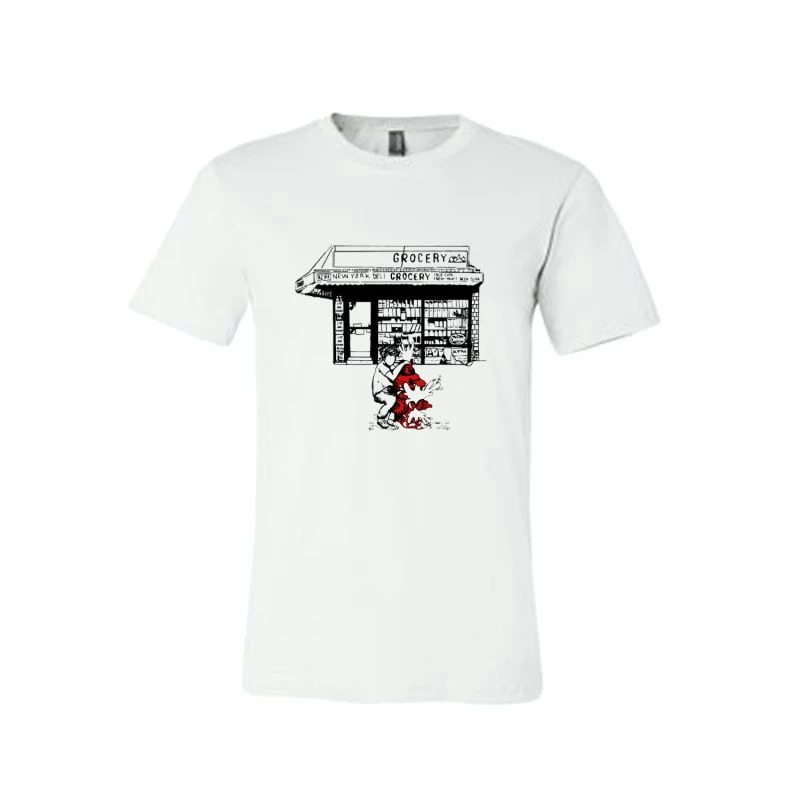 The inspiration behind the image on this oversized white cotton T-shirt is the fire hydrant which has become a symbol of New York summers since the early 1920’s. New Yorkers throughout the boroughs whether young, old or in between have used the fire hydrant as a way to cool off from the extreme New York summer heat.