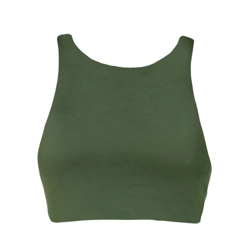 Feel covered but breezy in our low impact, high-neck sports bra (or crop top!) featuring a low back that keeps you cool, and adjustable criss-cross straps for wardrobe versatility. Perfect for hot yoga or hiking in the tropics. Ooh, fancy.