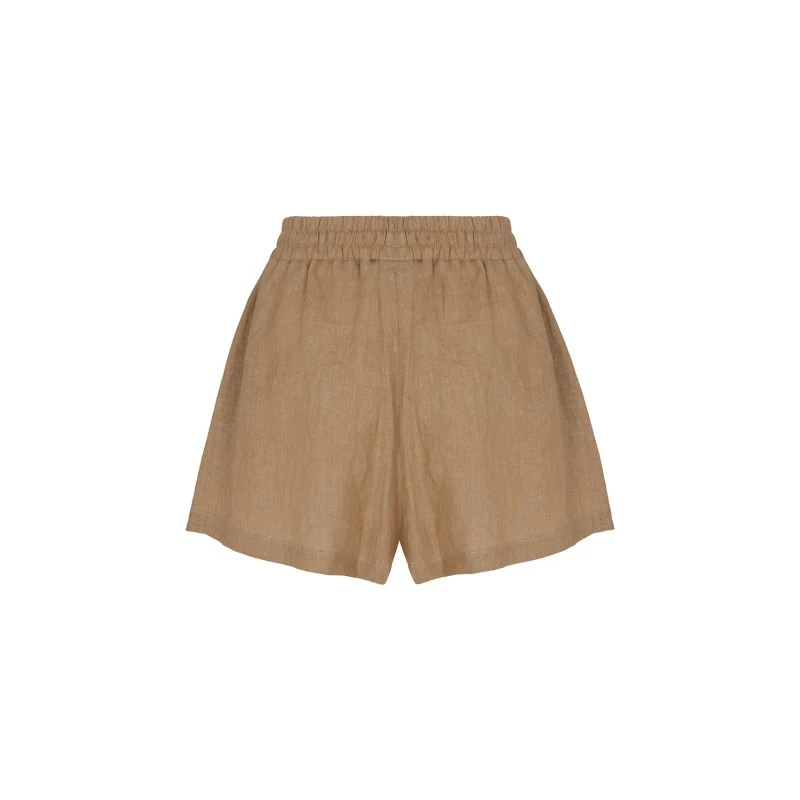Linen mini shorts with elastic waistband and adjustable tie belt. Side pockets.