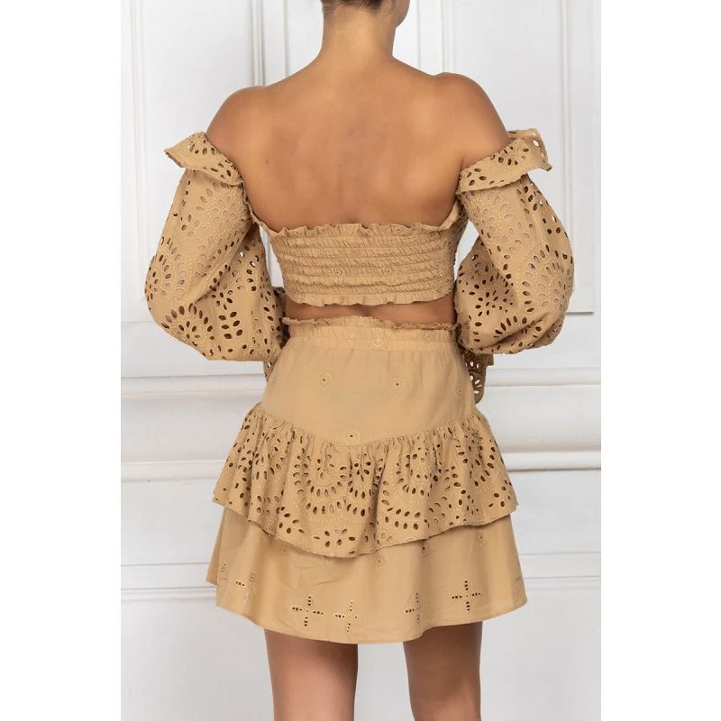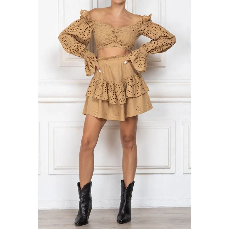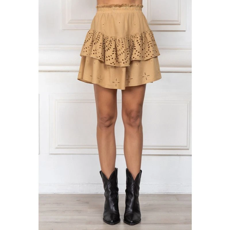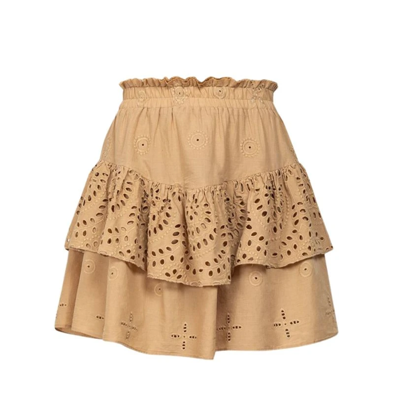 This beige skirt is an elegant addition to any wardrobe. Crafted with a high-quality cotton fabric, the skirt features stunning English embroidery for a classy look. Perfect for formal or semi-formal occasions, this skirt is sure to turn heads.