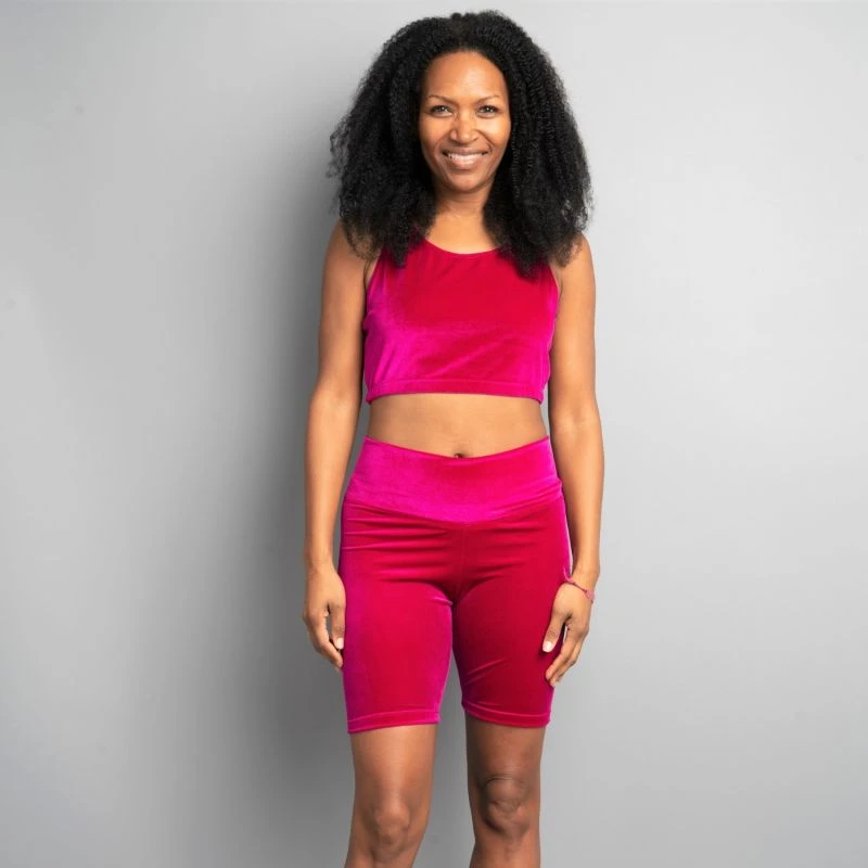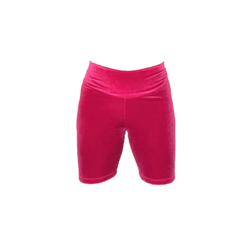 Elevate your work out gear with our bike shorts in magenta velvet. Features a high waisted design for a body flattering fit. Pair with our matching Strappy Bralette or Cropped Top.