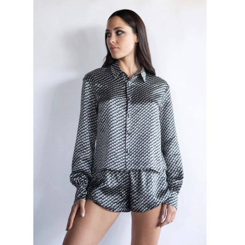 Designed to be worn with the matching Gelso Milano collared shirt, these shorts have a high-rise, elasticated waist, gently curved hems, loose legs and side pockets. Wear yours while lounging or for elegant nights out.