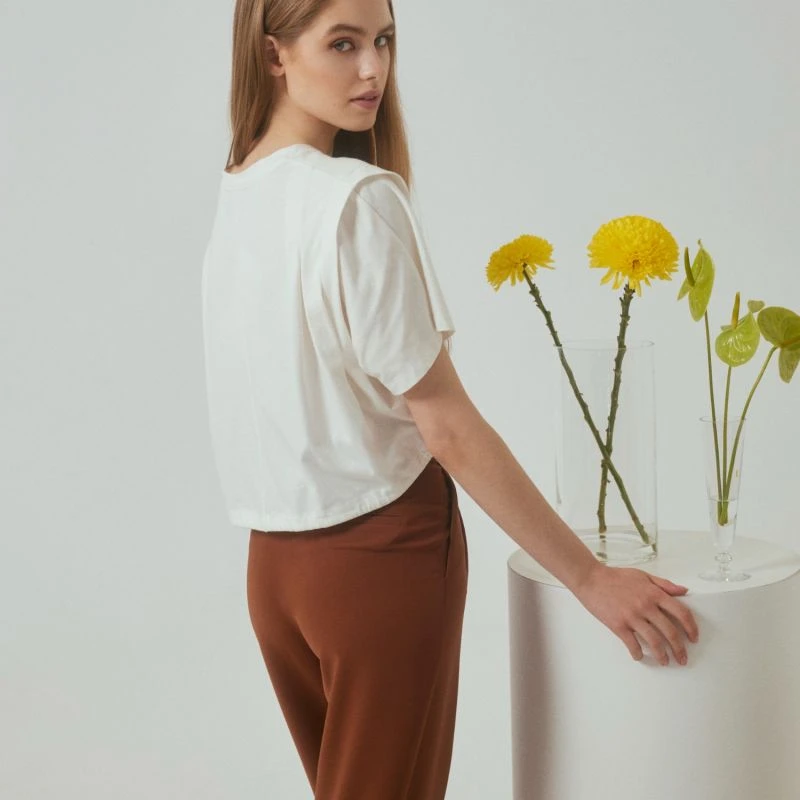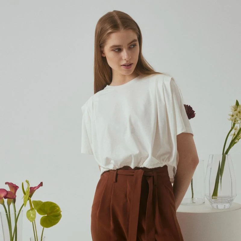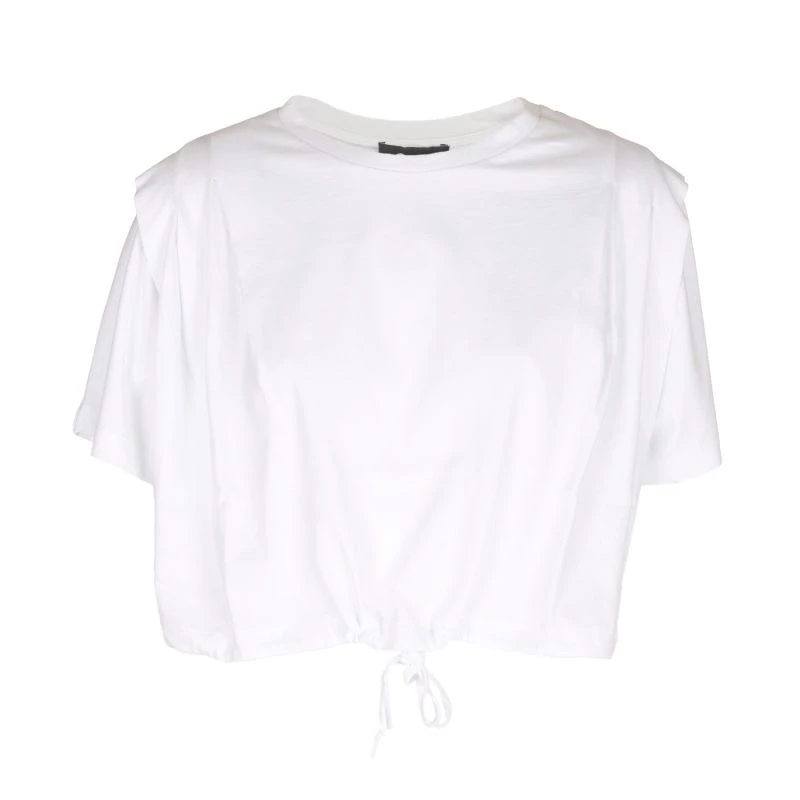 This crop t shirt with shoulder detailed fitting will provide an eye catching figure!