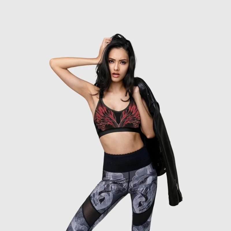 Comfi by Zoelle is the ultimate active bra for your most exhilarating adventures. The brilliant graphics are designed to visually enhance cleavage support. Soft cups, removable padding, innovative fabric, and a light-medium impact wireless design provide luxurious, breathable all-day comfort.