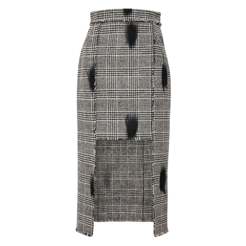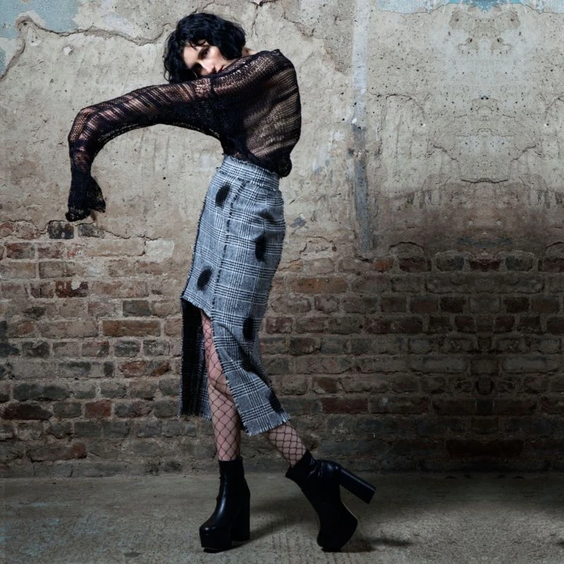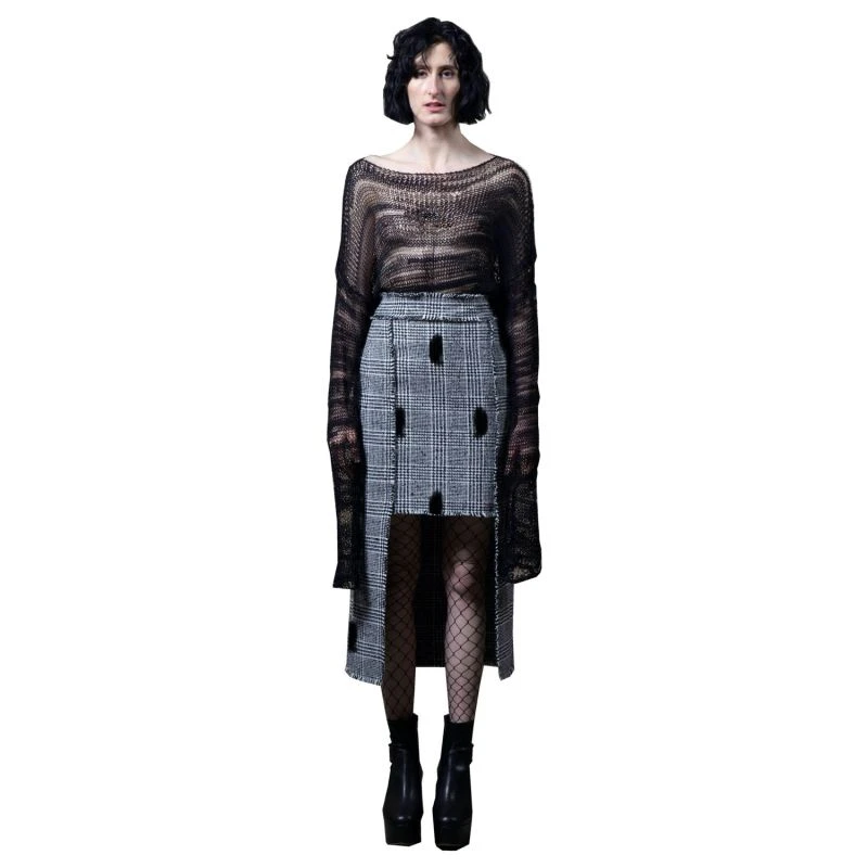 Dark Rise Skirt is a tight fitted skirt with fringe details. The front is shorter, side panels and back are elongated. You can choose wearing it for an everyday look or a night out look.