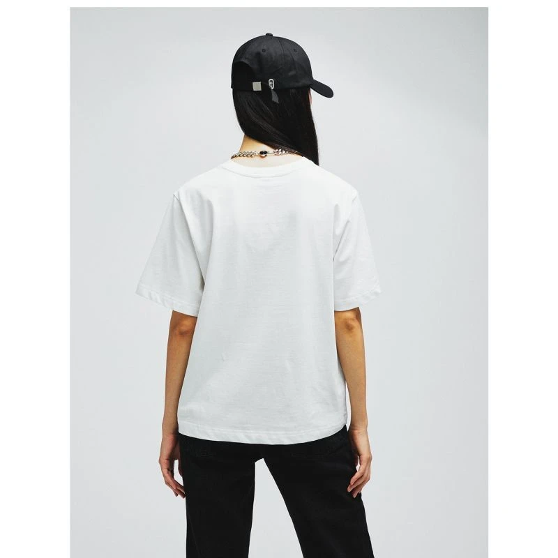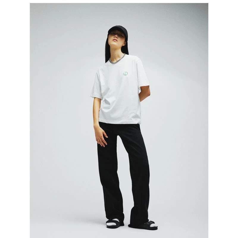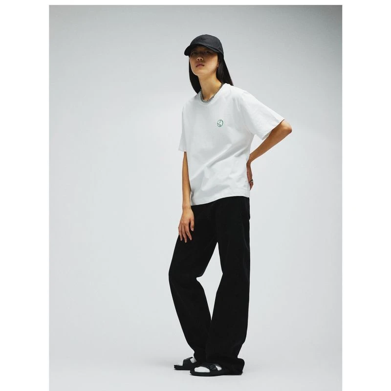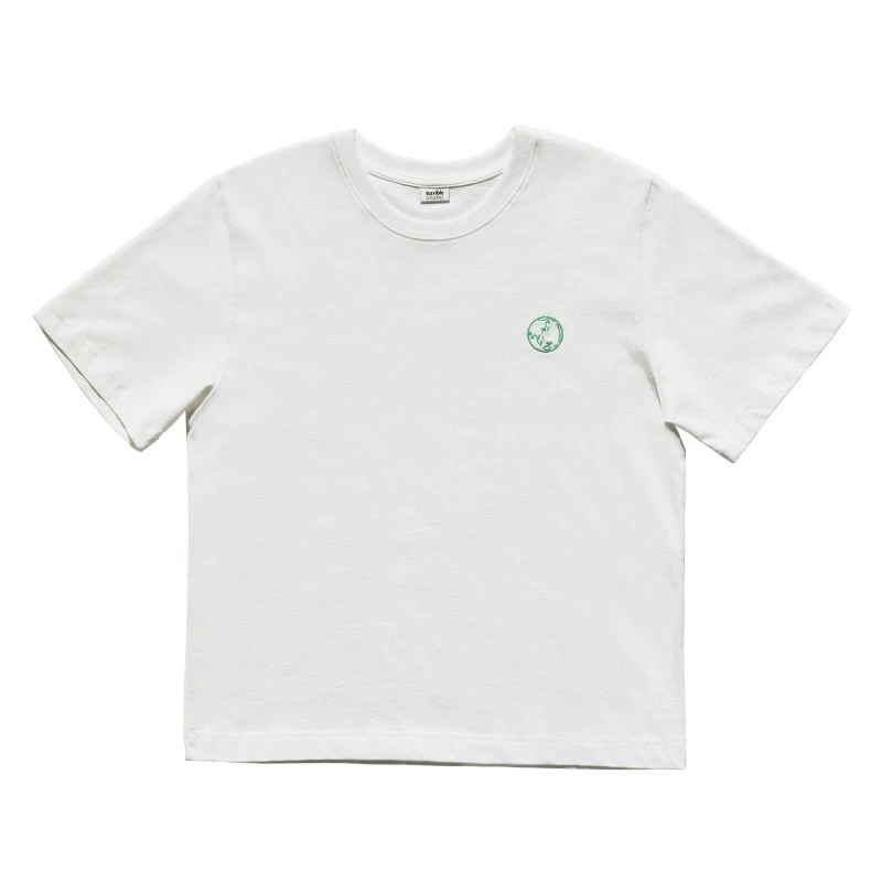 Terrible Studio Earth Embroidered Organic Cotton T-Shirt in White. Crewneck. Oversize fit. Off-white colour.