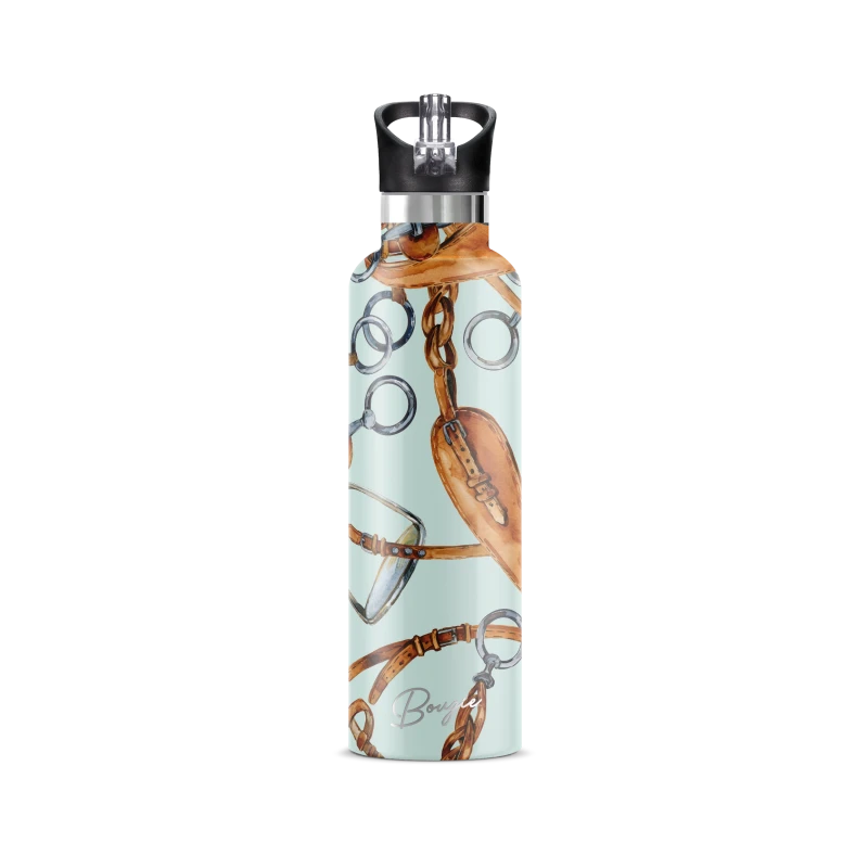 Enjoy equestrian-inspired luxury at your fingertips with this eye-catching insulated bottle with an easy carry handle. This ultra-fashionable stainless steel water bottle is the perfect hydration companion with our convenient Flip‘n’Sip Straw Lid. Keeping drinks cold for 24 hours, makes this bottle the ideal gift for every horse lover.