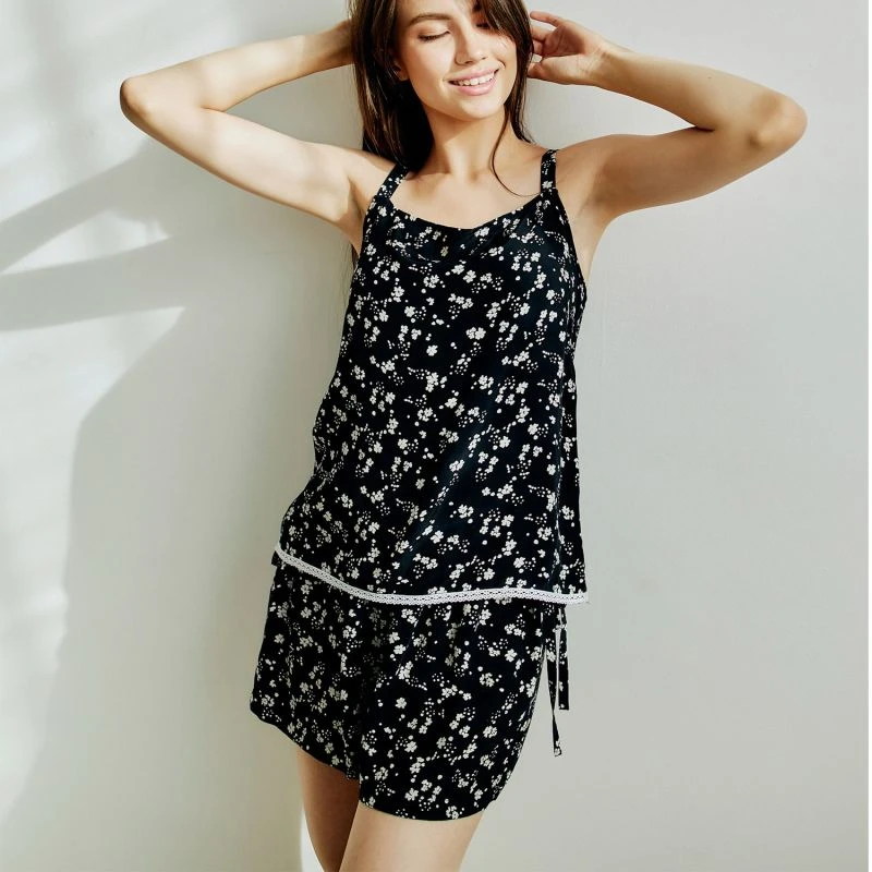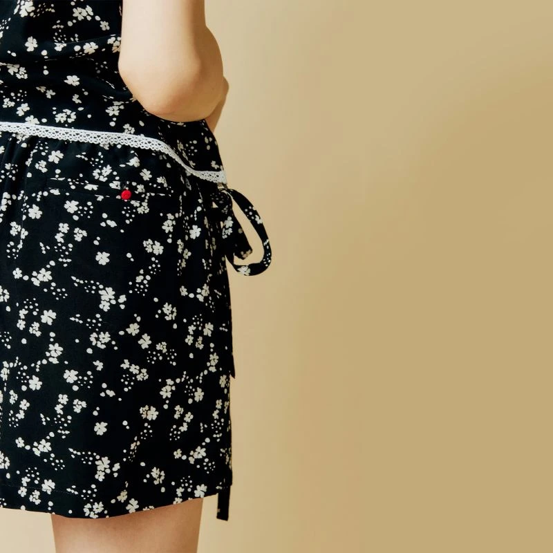 Black, white and a little bit of red. These flattering shorts with an elastic drawstring are perfect for pool time, before and after.