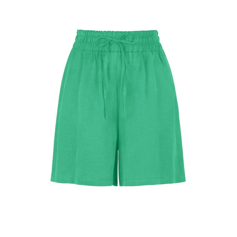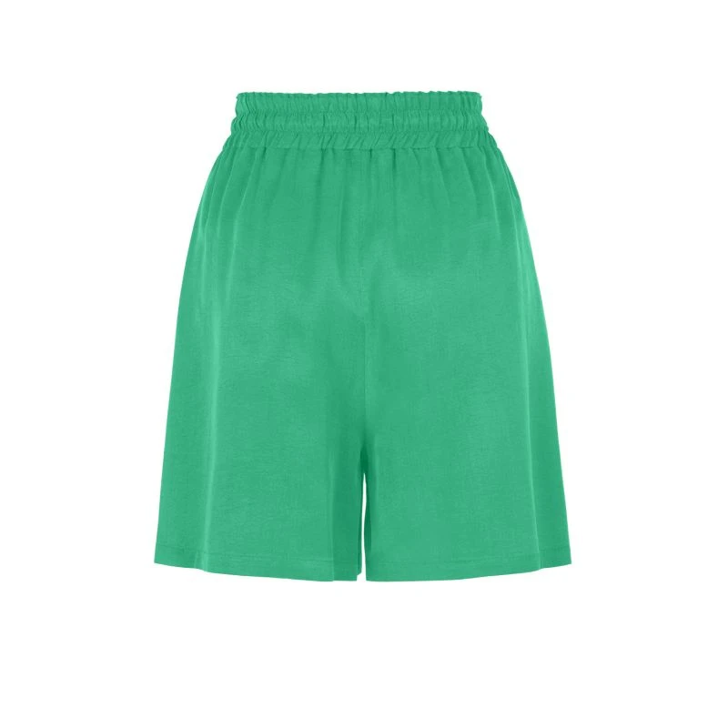 High-waisted mini shorts with side pockets. Elastic waistband with drawstring.
