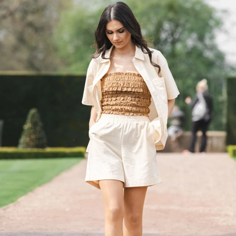 The high waist linen shorts feature side pockets, an elasticated high waist for a comfortable fit and is available in 3 colours. The shorts are also available as a co-ord set with our matching linen shirts.