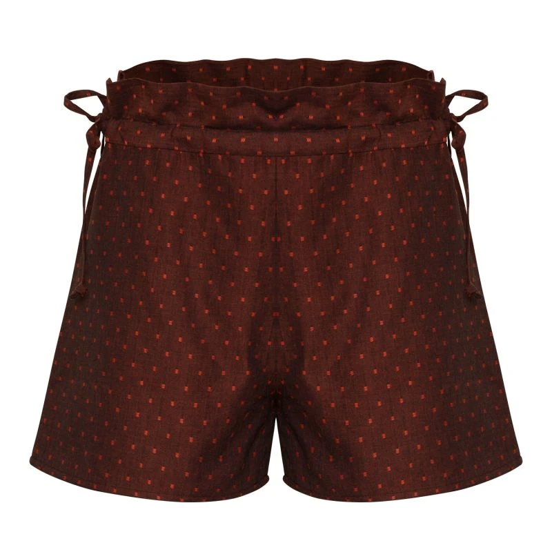 The woven cotton fabric has a beautiful sheen and really brings out the vivid colour of the shorts. They are available in a deep, luscious burgundy with dots, or a gorgeous purple with dots. Pair them with a simple black or white jersey to allow the colour of the shorts to pop.