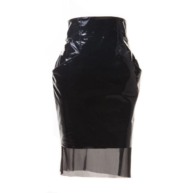 High rise patent leather double layered mini skirt. Fits true to size, model is wearing size S.