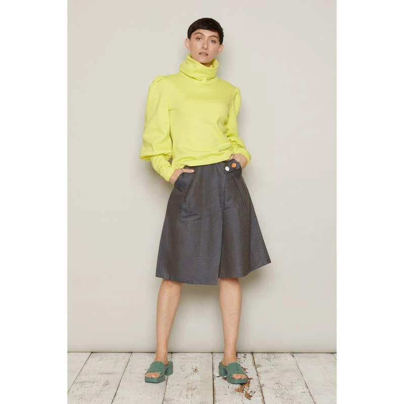 Fastened with statement reclaimed buttons, they are available in Slate Blue or Stony Beige.