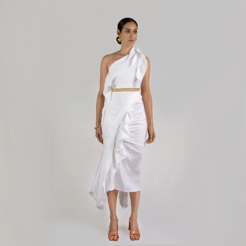 Introducing the versatile and stylish “Lulee Crop Top” – a chic and modern piece designed with a detachable bottom feature that allows you to lengthen the top for a different and unique look. This exquisite crop top is the perfect match for the “Lulee Skirt,” offering endless possibilities to create a coordinated and fashion-forward ensemble.