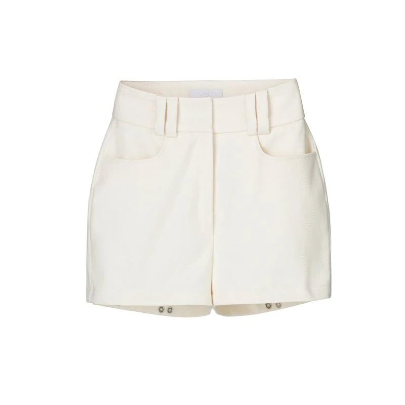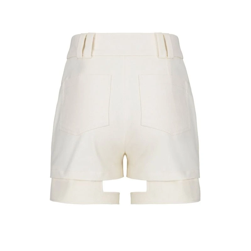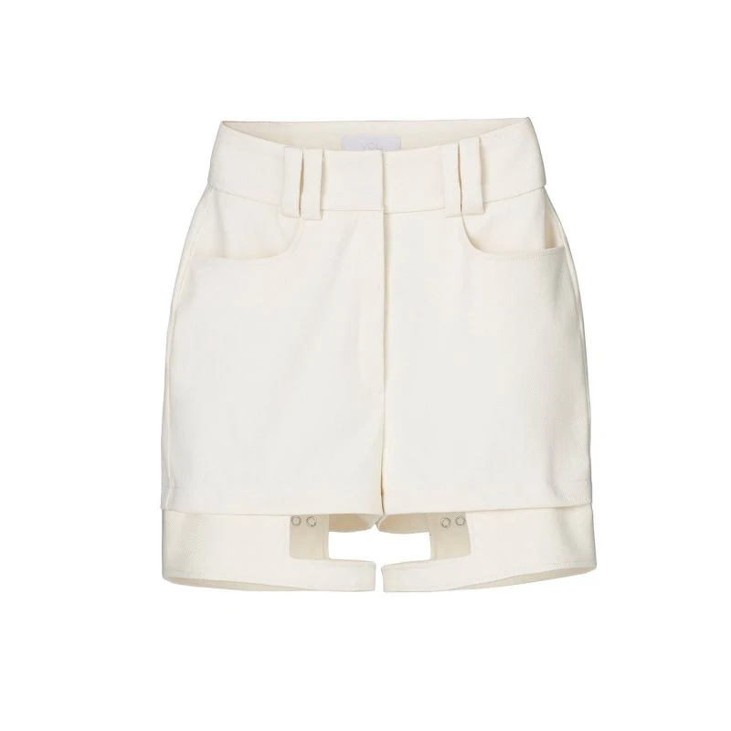 Jean shorts crafted in off-white denim, featuring snaps and zip fly closure, high waist, and detachable elements that add versatility, allowing you to wear them in two different ways.