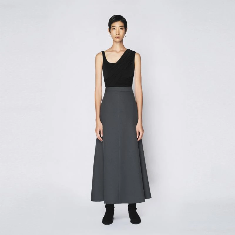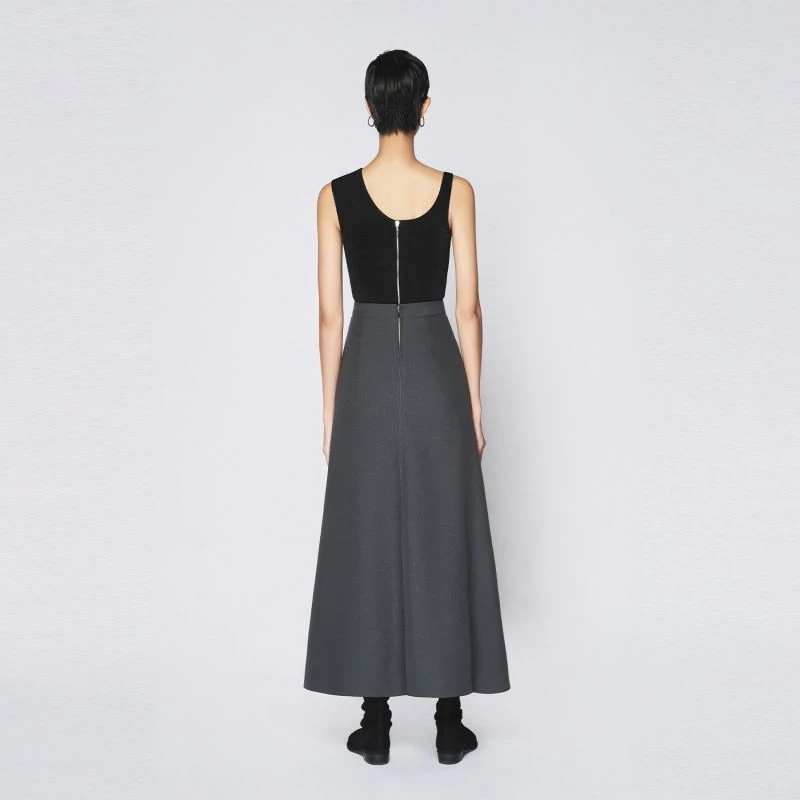 Crafted with meticulous attention to detail, this skirt exudes understated elegance in every stitch. The dark hue serves as a canvas for endless styling possibilities, allowing you to create looks that range from casual to sophisticated, day to night. Whether paired with a crisp white blouse for a polished office ensemble or with a graphic tee for a relaxed weekend outing, this skirt effortlessly adapts to your mood and setting.