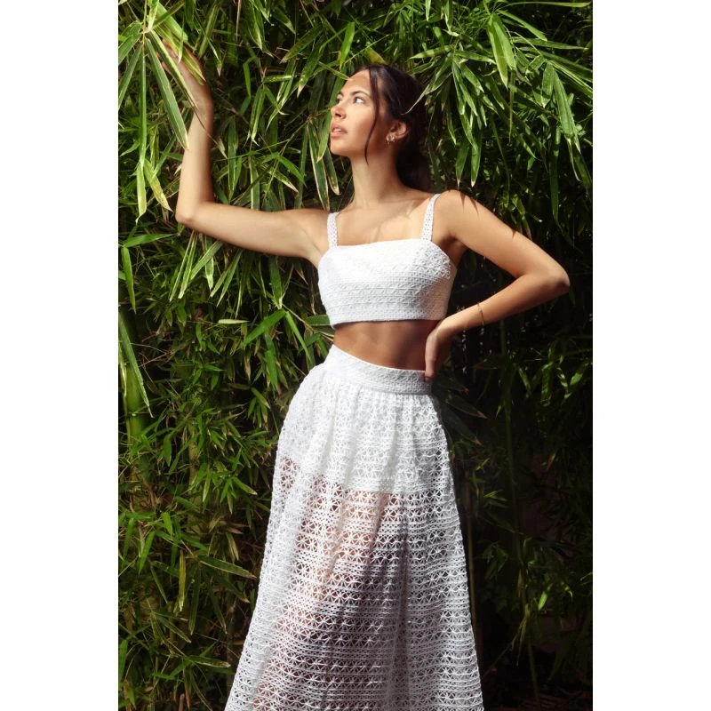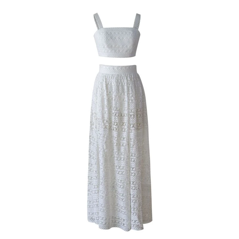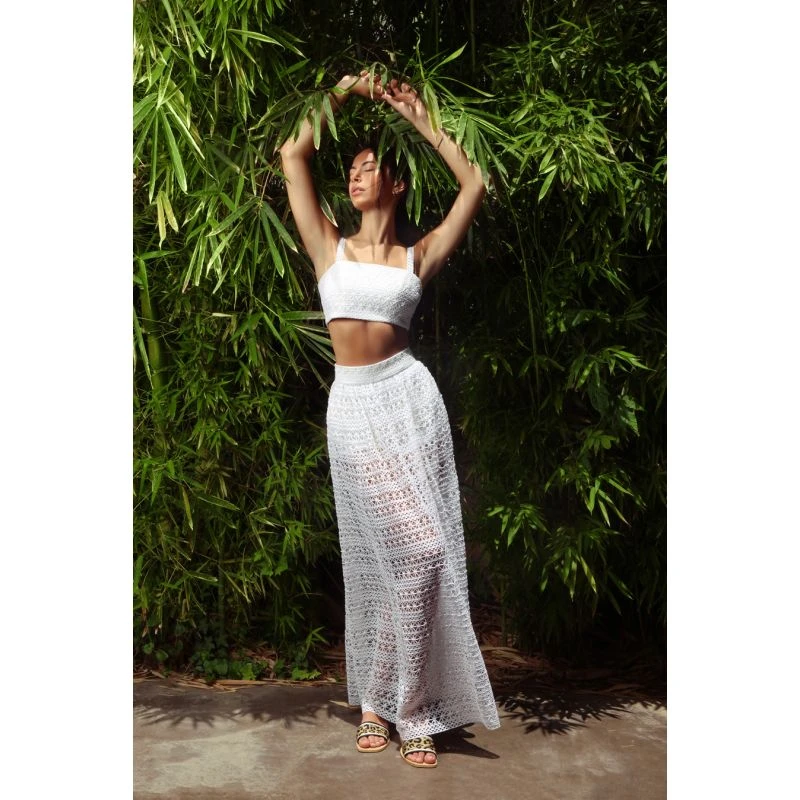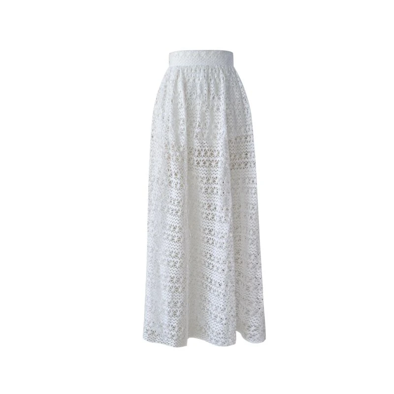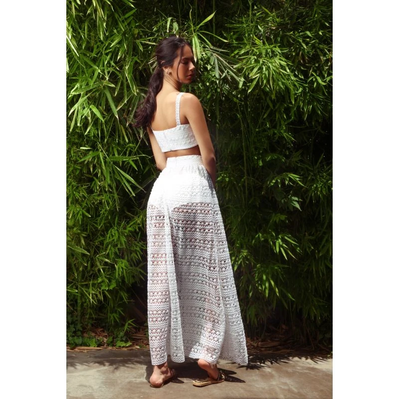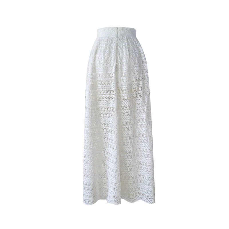 Crochet High Waist Ankle Length Flowy See-Through Skirt with an attached Shorts Underneath.