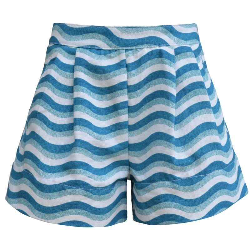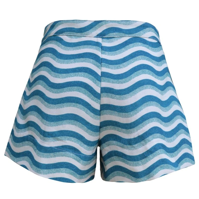 Wide shorts made with high-quality panama cotton that are printed with digital technique. Design features a tri-color wave pattern. Shorts have two lateral pockets and lateral zip.