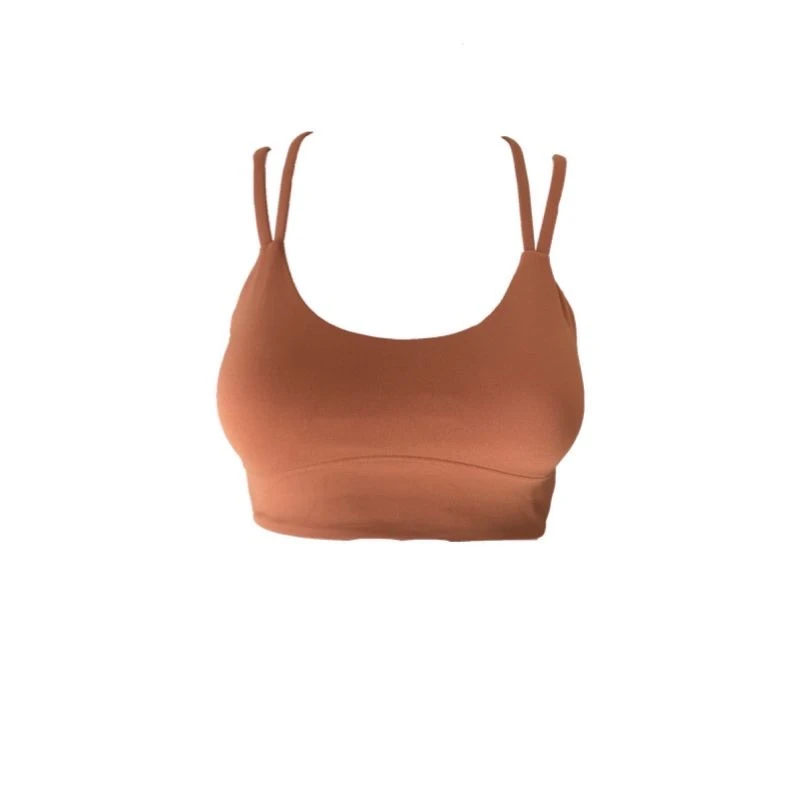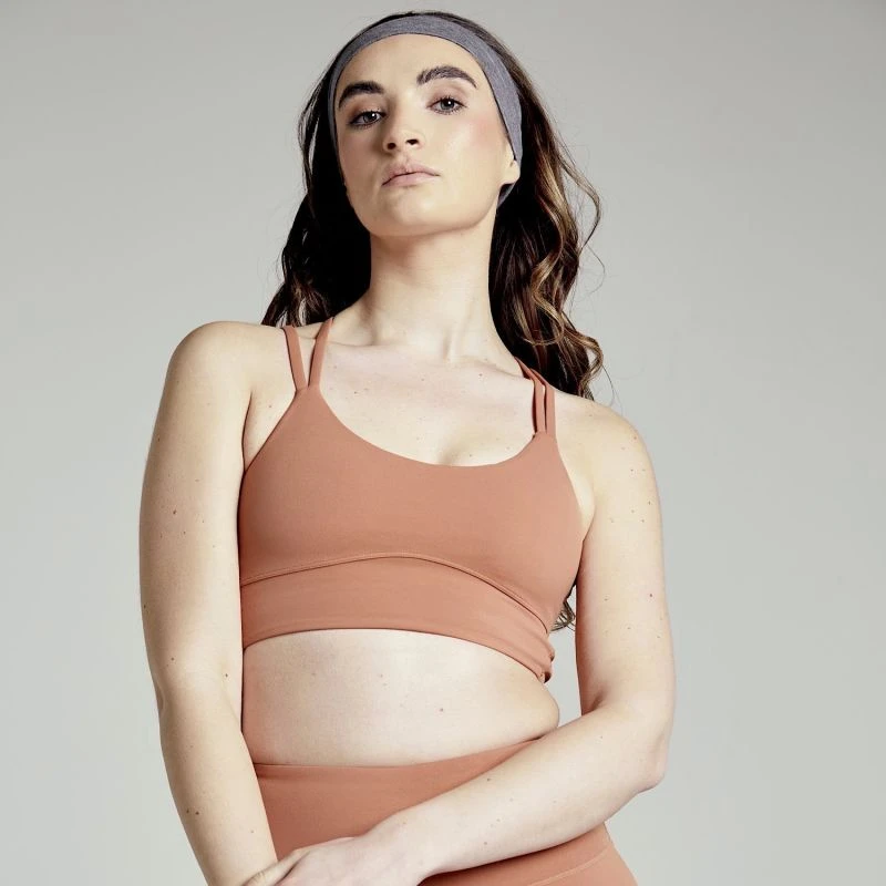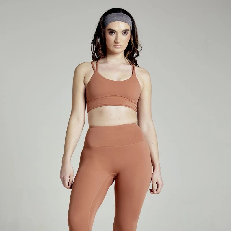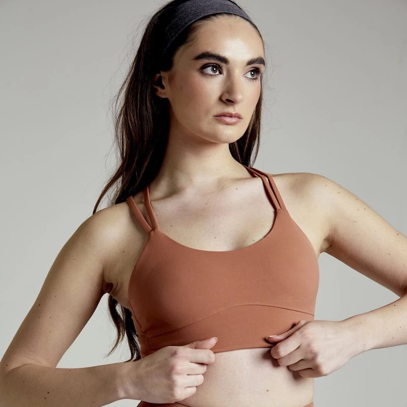 An essential addition to your active wardrobe. Buttery smooth fabric in a flattering double strap silouette paired with a detailed back. With removable padding to adjust your support, in a rustic clay tone. Perfect for doing everything, all seasons.