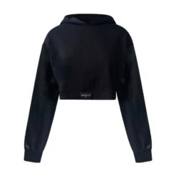 To keep warm in style, opt for the MV sweatshirt, in black or white. With a pair of flowing pants or jeans, it will warm up your evenings in a relaxed way. At home or on weekends for all occasions, it gives you a nice young and cool look, thanks to its shoulders slightly tilted back and a large hood. Its clean cut waistline highlights the hips. The originality is also in its long sleeves leather effect tone on tone, hyper modern.