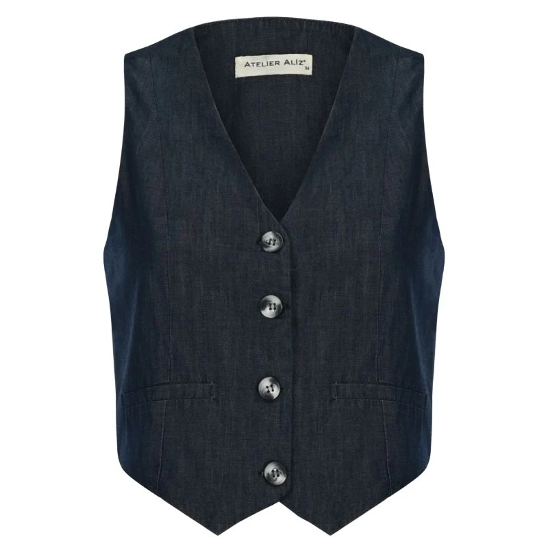 It’s A 100 % Cotton denim Waistcoat. It’s front buttoned and it perfectly matches high waisted pants.