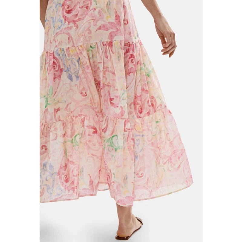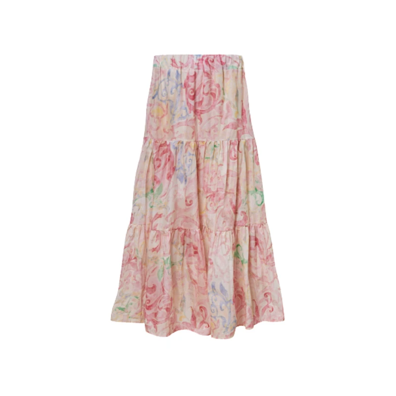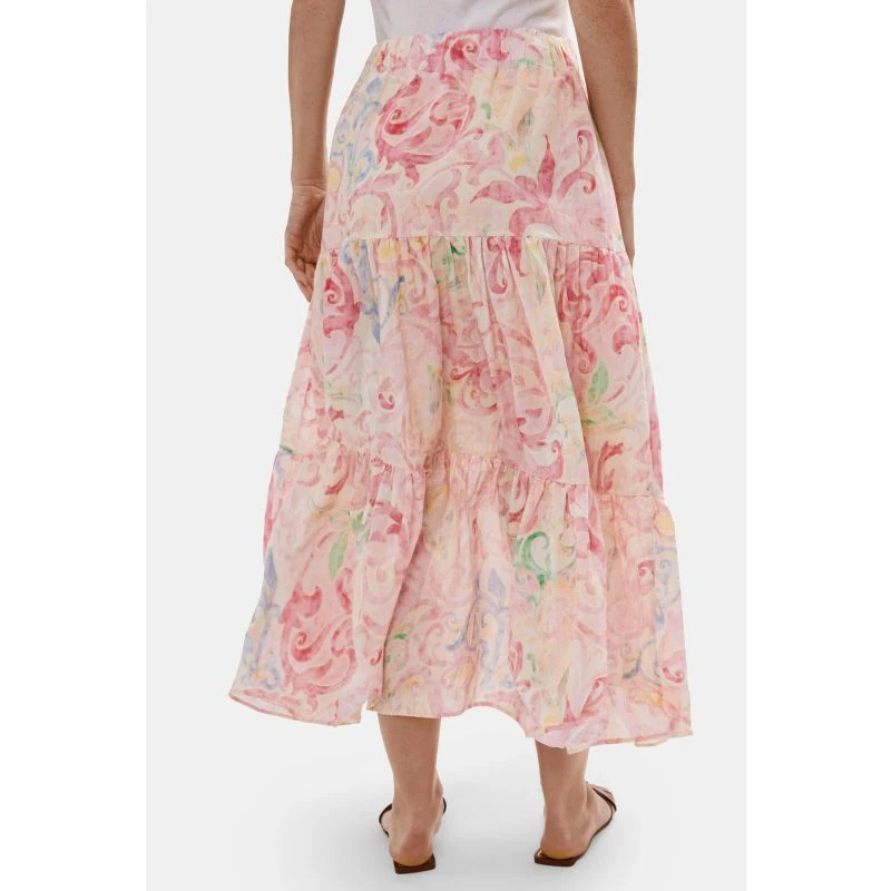A light a flowy skirt, featuring an all over baroque print. The pastel colours are complimenting the romantic ruffling of this James Lakeland skirt, whilst the elasticated waist allows great comfort and flexibility with sizing.