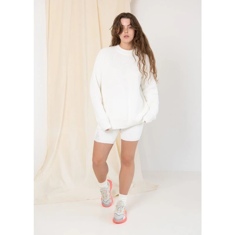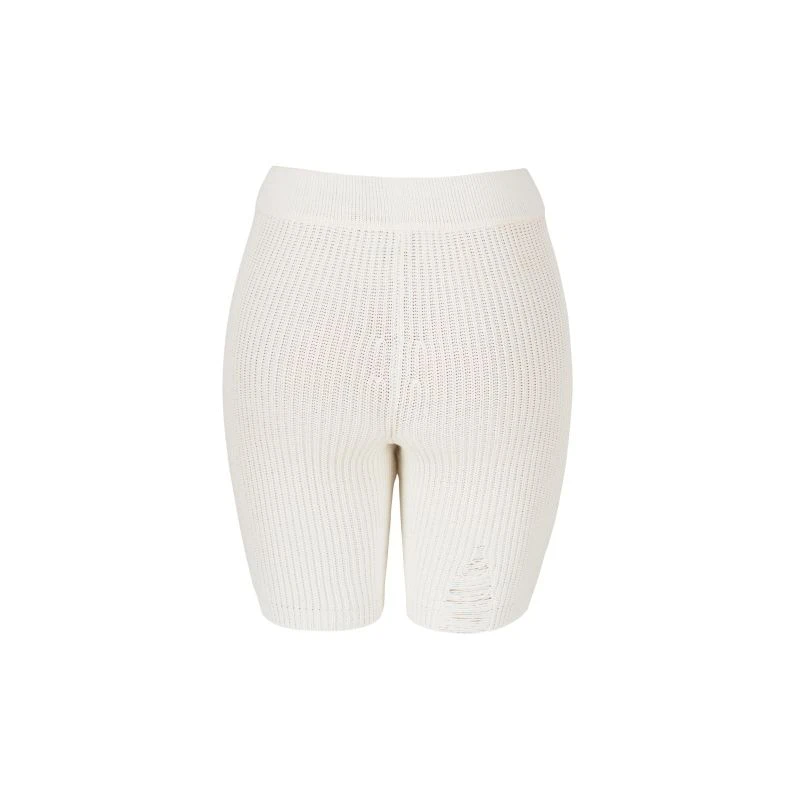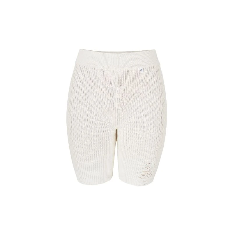 To keep up with sustainability factors for this style we’ve chosen cotton with a bit of recycled poly – this yarn has unique structure resembling a rope while polyester provides elasticity and durability. Featuring a rib structure, these bike shorts are designed for a close fit and they hit just above the knees. Elevated design with a distressed detailing and have a soft elastic high-rise waistband. Designed consciously with a good fit, feel and comfort. Team yours with the coordinating cropped top or oversized jumper for weekend errands.