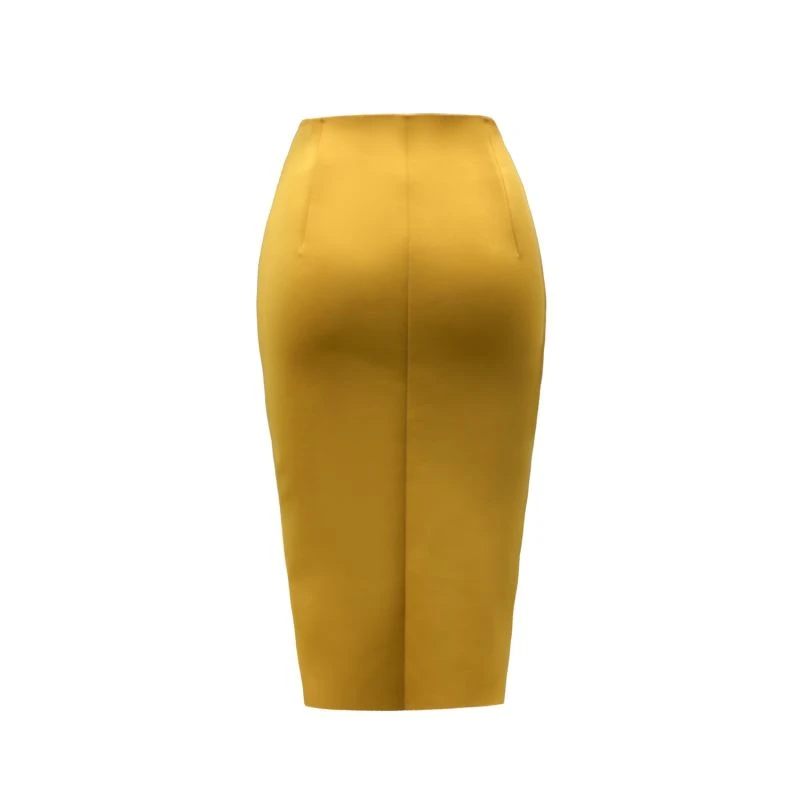 high waist skirt with slit and structured feature in Mustard.