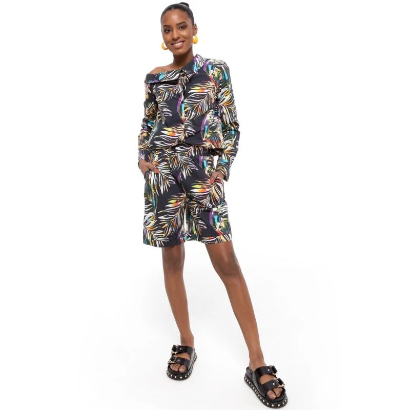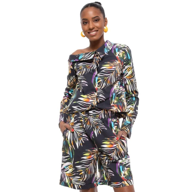 The product is made out of cotton printed fabric. It has high waistband, elastic waist and side pockets.