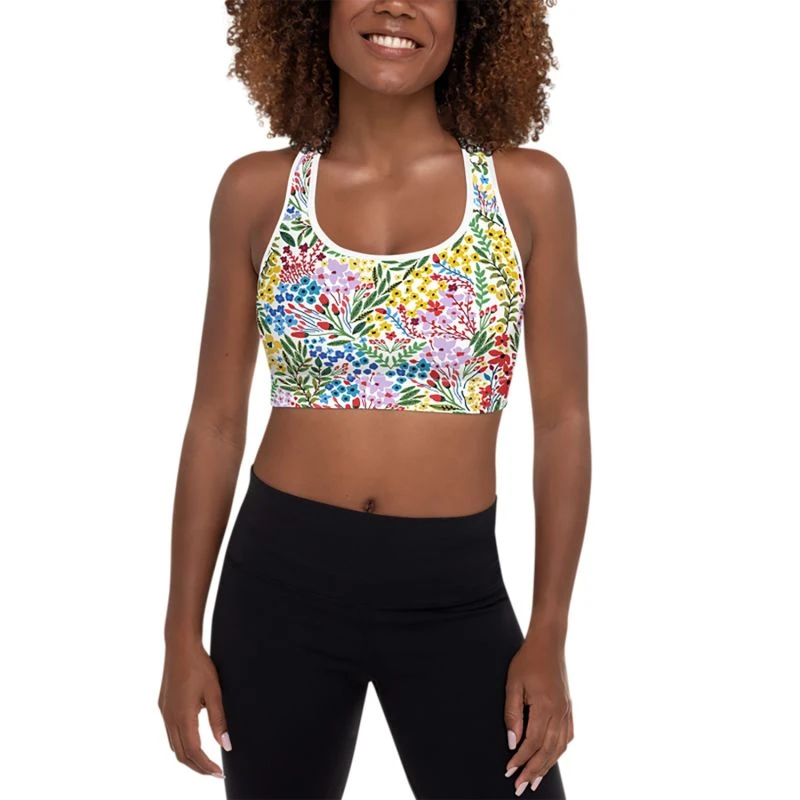 This sports bra is made from exclusive, hand-illustrated patterns, designed in NYC, made in Mexico. This Padded Sports Bra has soft, moisture-wicking fabric and a comfy cut that’s perfect for low and medium intensity workouts. The extra material in shoulder straps and double-layer front provide all the necessary support, while the padding can be removed from the mesh lining as necessary. Four-way stretch material that stretches and recovers on the cross and lengthwise grains.