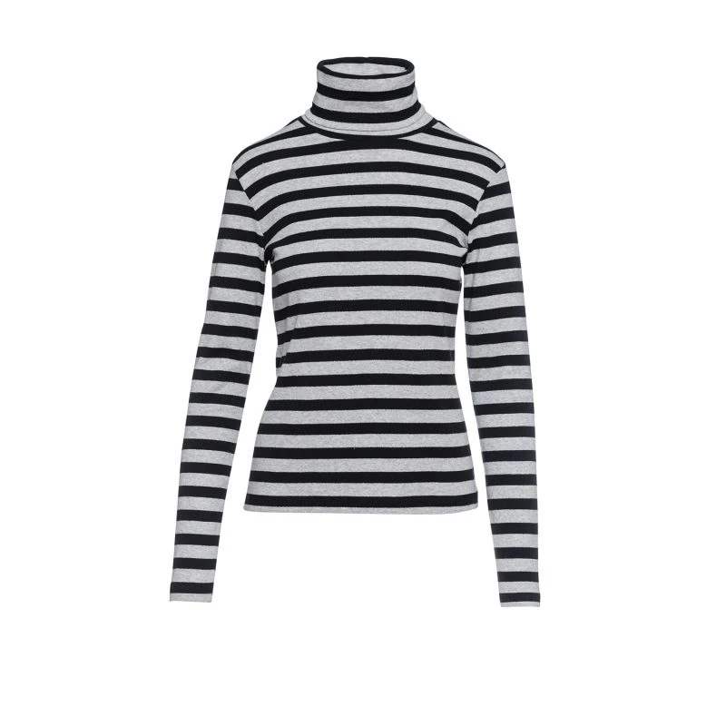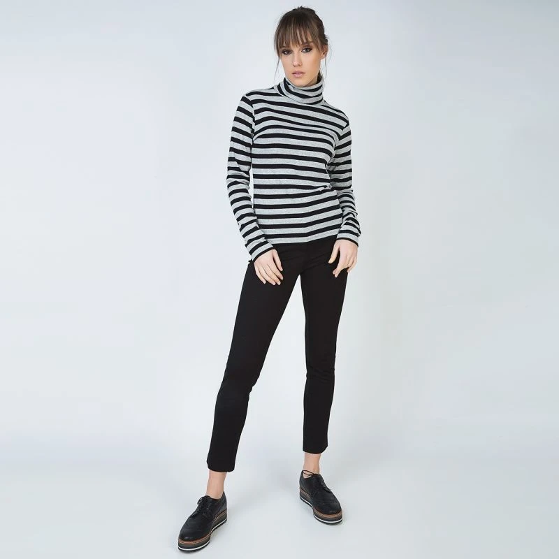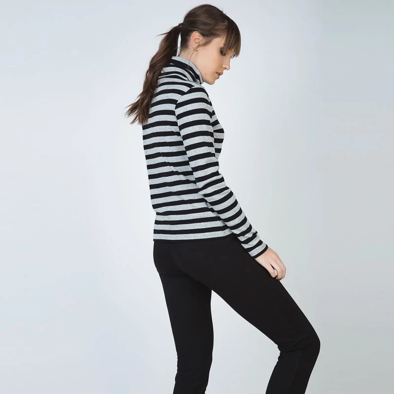 Striped polo neck jumper in black and grey in stretch fabric. Long sleeves. Fitted silhouette. Garment is fitted.