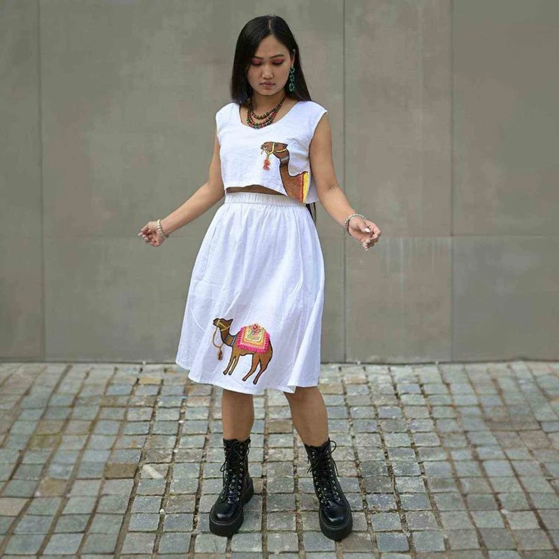 Elevate your style with our exquisite handloom skirt and top set, crafted with care from soft, breathable cotton. Each piece features a unique hand-painted design, adding an artistic touch to your ensemble. Embrace the elegance of traditional craftsmanship combined with modern fashion. Whether it’s a casual outing or a special event, this ensemble promises comfort and sophistication in one package. Step into the spotlight with confidence, knowing you’re adorned in a one-of-a-kind masterpiece.