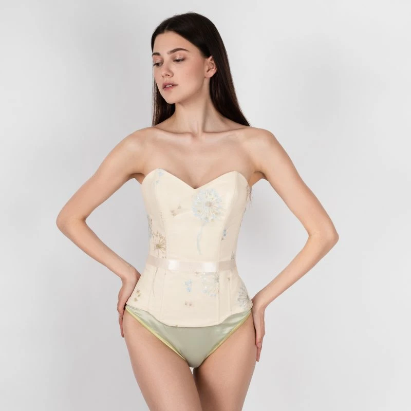 Sunlight Corset is a combination of sophistication and sunny light mood. This corset has a natural push-up effect due to the special arrangement of the bone layout and design. The corset is able to reduce the waist and hips, creating the perfect hourglass silhouette that makes you more feminine.