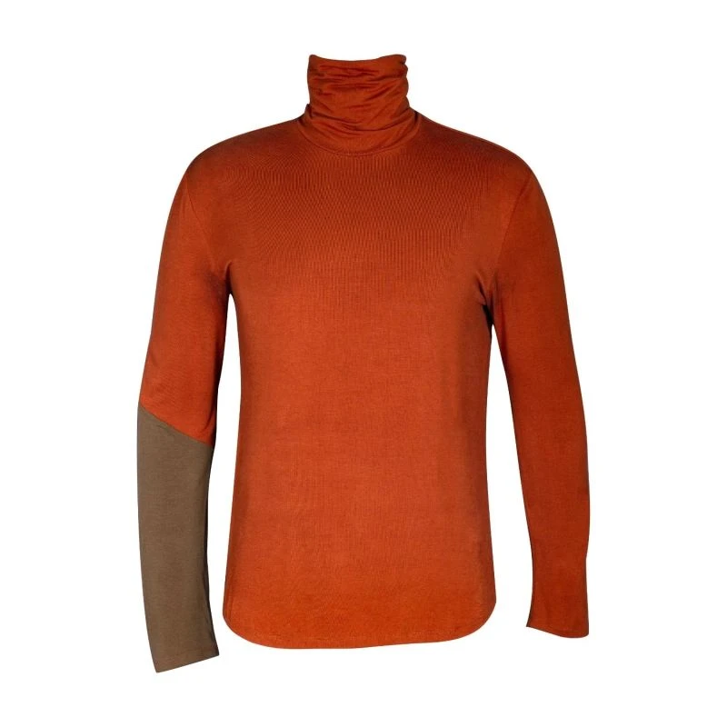 Super soft bamboo turtleneck with a combo sleeve. The fit on this streamline cut feels like a breathable second skin without constriction.This amazingly luxurious and sustainable fabric is not only eco-friendly, but also has natural anti-microbial properties that fight bacteria. This is a staple that will stand the test of time.