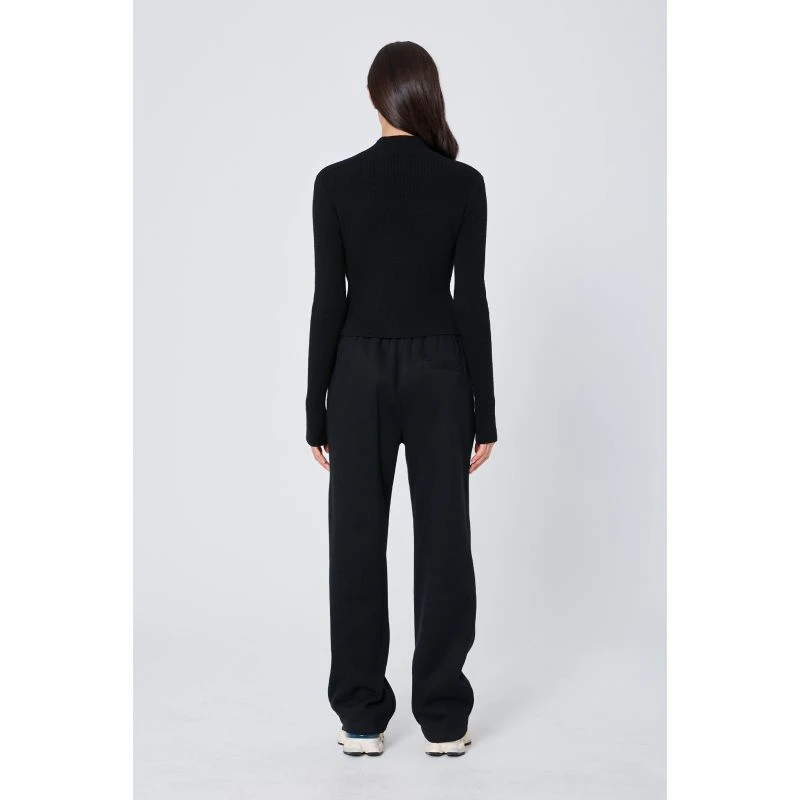Second-skin style long sleeve top designed into a ribbed knit fabrication, featuring mock neck collar detail.