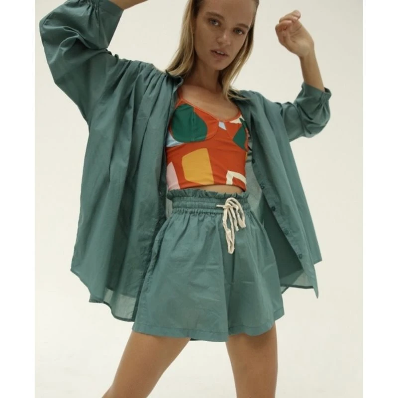 We can’t get enough of these! Cut from a very fine 100% cotton, the Paperbag Drawstring Shorts are all you’ll need this summer! Decorated with ruffles at the waist, these shorts are an elevated version of classic cotton shorts. Featuring two pockets at the back and a drawstring fastening that since the waist to your preference. Matched with the Bouy Shirt, you are sure to WOW!Â
