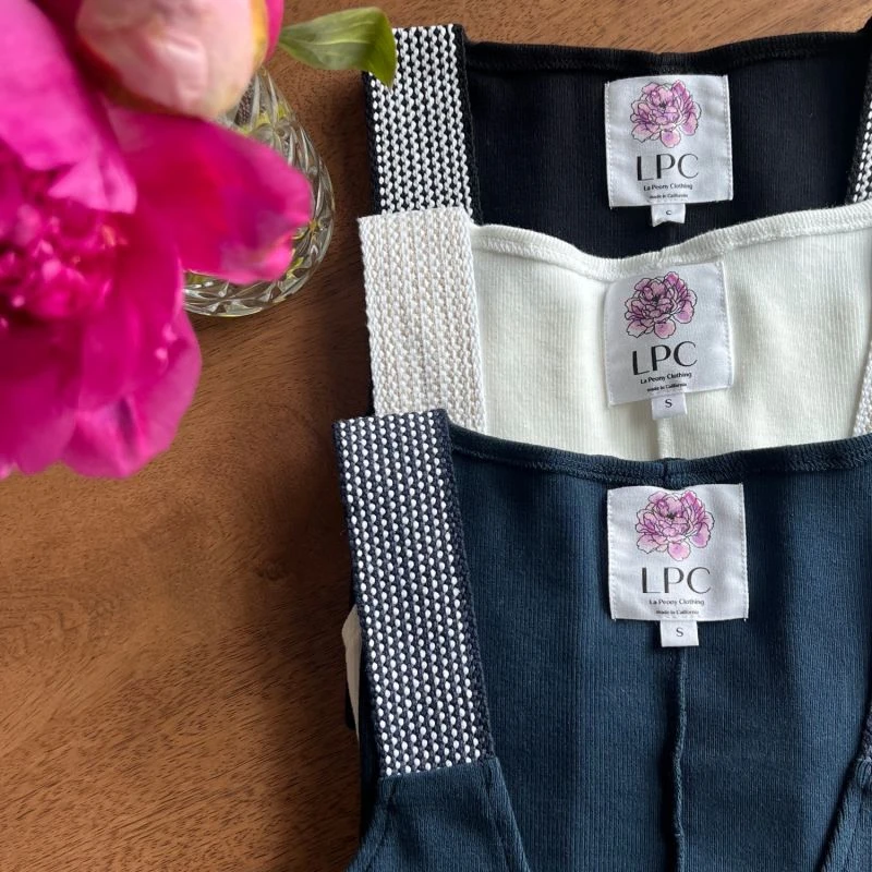 The versatile racerback rib tank features the detail of Artisanal shoulder straps handmade by the Artisans of Union de Artesanos de Santo Tomas Jalieza Collective in Oaxaca, Mexico. Design is simple and versatile. Each purchase does good by supporting living wages and fair trade abroad and at home in the heart of Los Angeles. Fit notes: length is slightly cropped to pair well with The Lucy Pant and worn under The Lucy Capelet or Megan Long Sleeve Top.