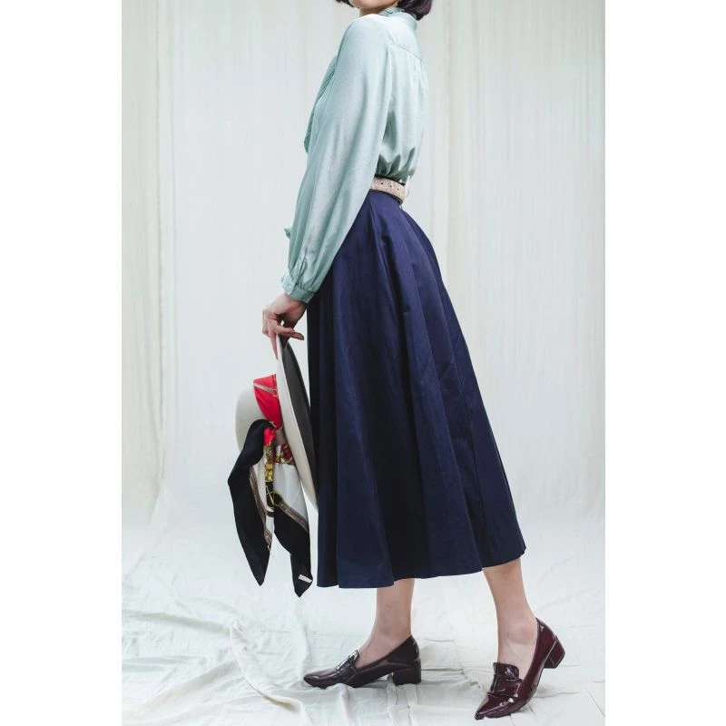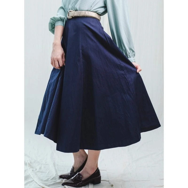 Unveil a special kind of perfection with our Sugar Cream vintage cotton skirt in rich navy blue. Its unique design, complete with a flared silhouette and secure back zipper, makes it a must-have for fashion-conscious individuals.