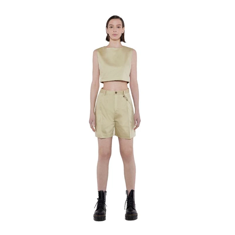 Combining formal attire with a playful style that reminds one to boarding schools vintage uniforms, the Wes shorts feature high waist and wide legs to allow comfort and mobility. These shorts are available in different colors of twill and also in tartan, channeling the spirit of punk