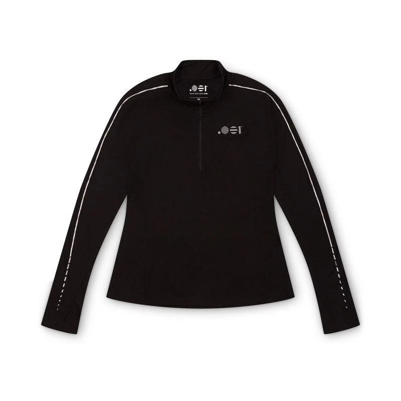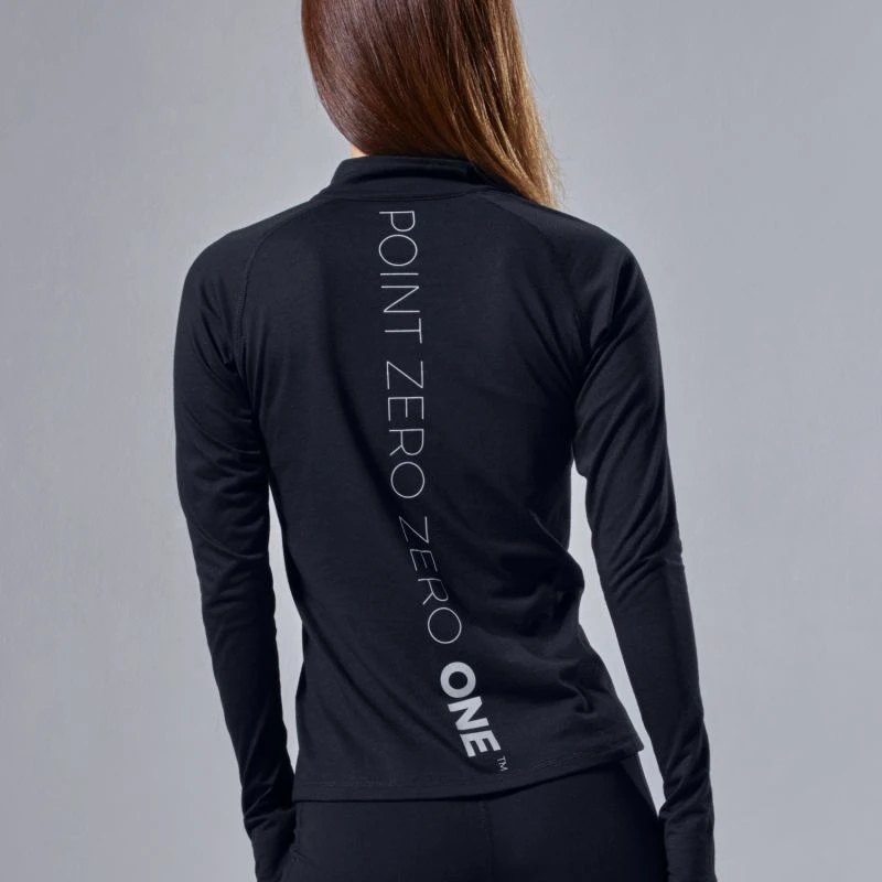 A premium, but sensibly priced long sleeve functional jersey with front half zip, using a mix of technical polyester and cotton fabrics, and built for the toughest of workouts in the gym or on the road. The longer length sleeves have thumbholes for warmth, comfort or practicality. For low light safety there’s a range of reflective detailing such as sleeve chevron designs, front .001 logo and Point Zero Zero One brand name on the back.